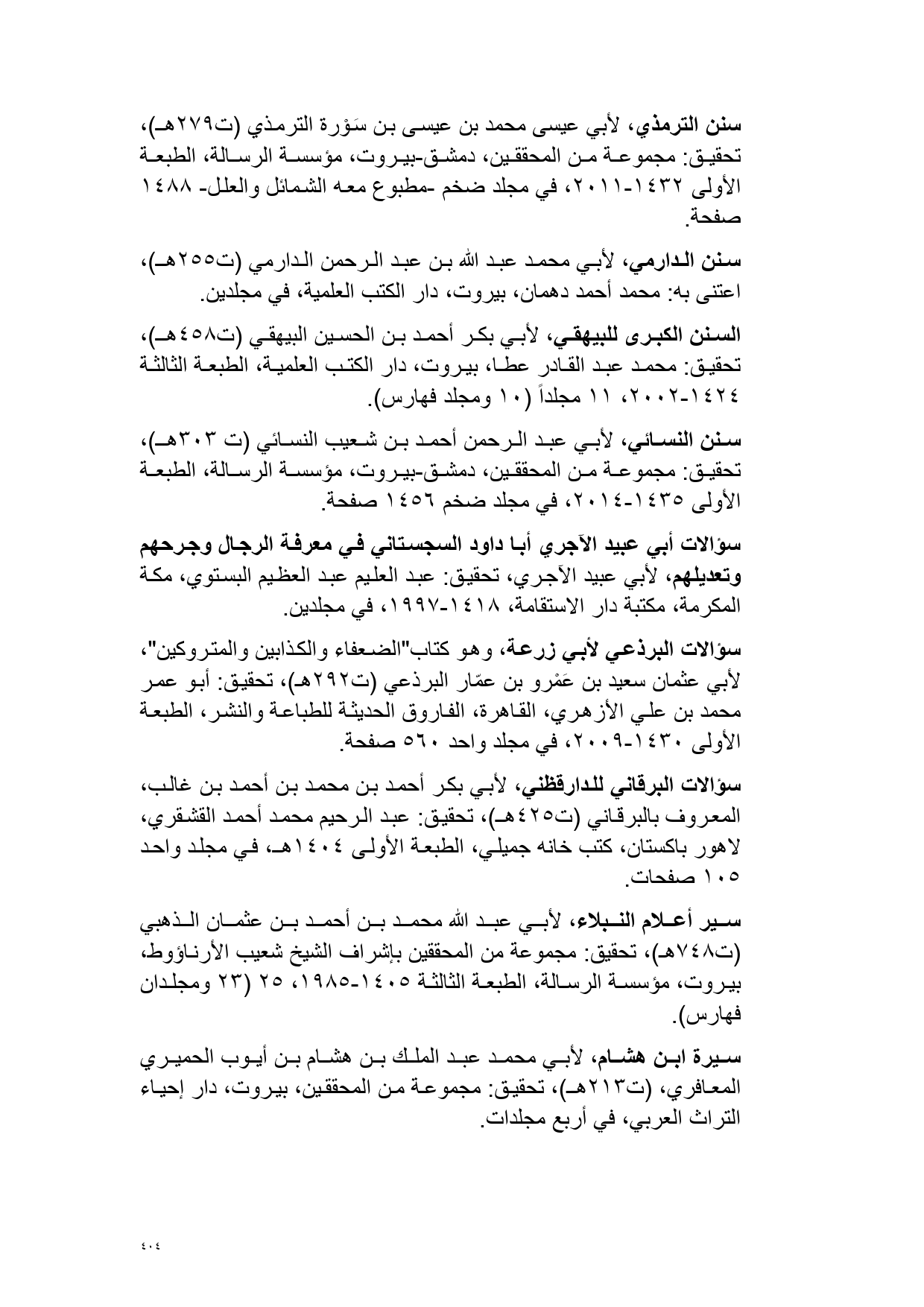 سير أعلام النبلاء، لأبي عبد الله محمد بن أحمد بن عثمان الذهبي (ت 748 هـ)، تحقيق: مجموعة من المحققين بإشراف الشيخ شعيب الأرناؤوط، بيروت، مؤسسة الرسالة، الطبعة الثالثة 1405 - 1985، 25 (23 ومجلدان فهارس).