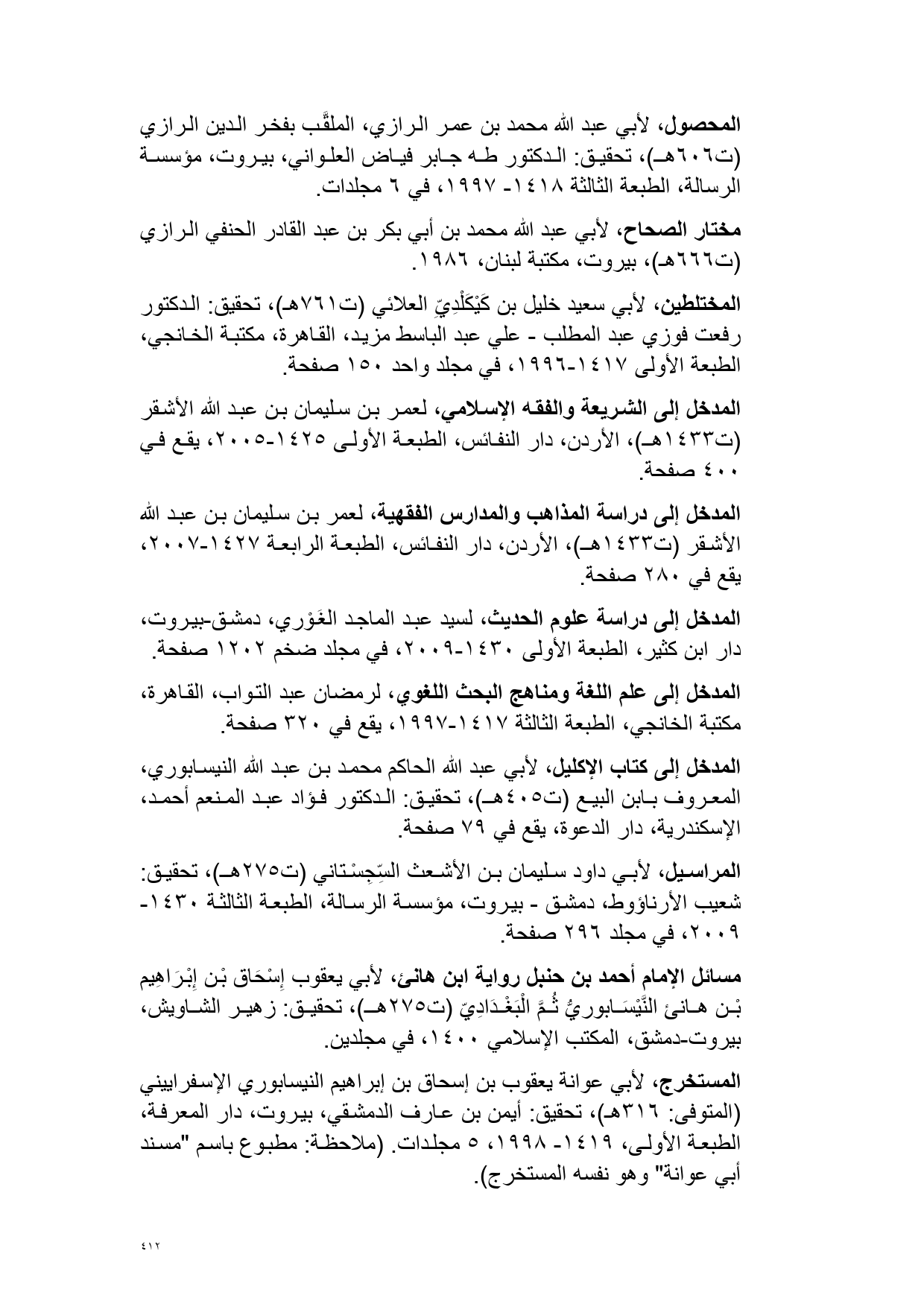 المدخل إلى الشريعة والفقه الإسلامي، لعمر بن سليمان بن عبد الله الأشقر (ت 1433 هـ)، الأردن، دار النفائس، الطبعة الأولى 1425 - 2005، يقع في 400 صفحة.