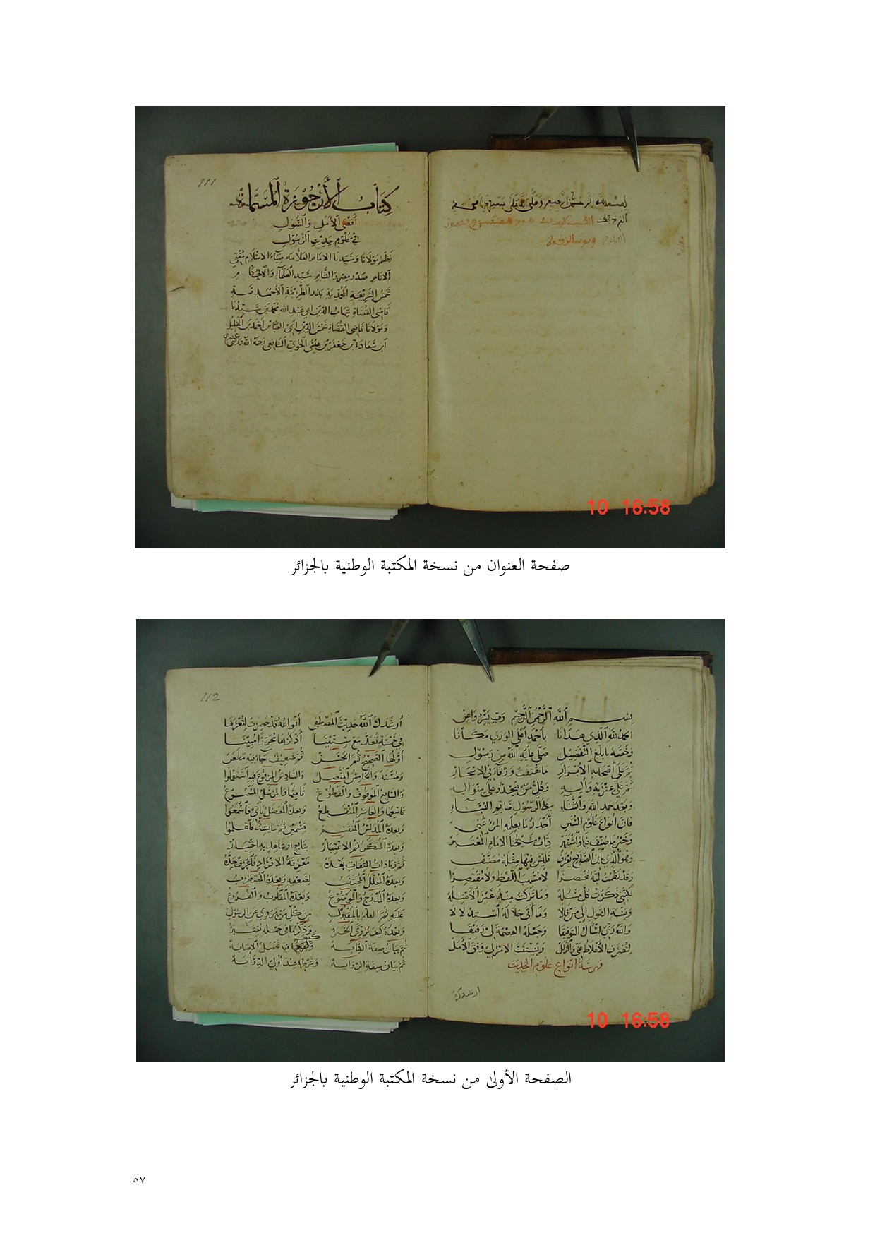 الصفحة الأولى من نسخة المكتبة الوطنية بالجزائر