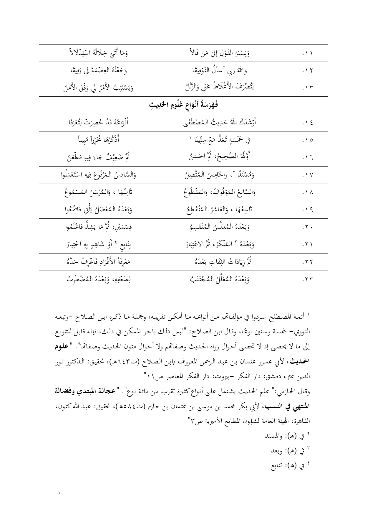 فَهْرَسَةُ أَنْوَاعِ عُلُومِ الحَدِيث