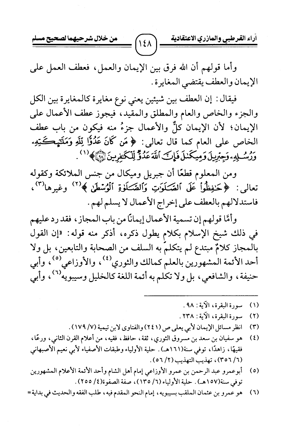 (¬٣) انظر مسائل الإيمان لأبي يعلى ص (٢٤١) والفتاوى لابن تيمية (٧/ ١٧٩).