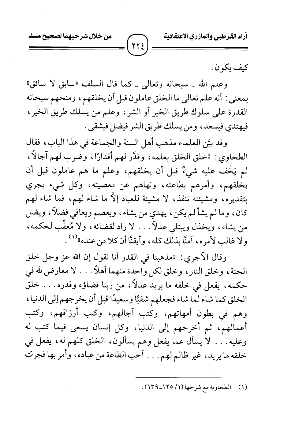 (¬١) الطحاوية مع شرحها (١/ ١٢٥ - ١٣٩).