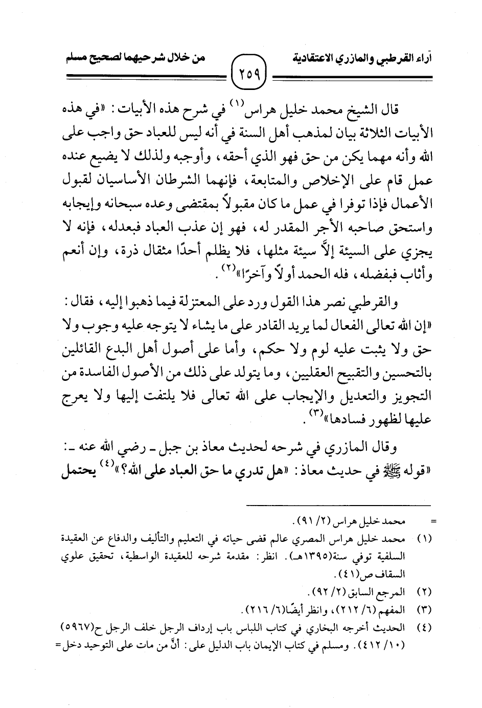 (¬١) محمد خليل هراس المصري عالم قضى حياته في التعليم والتأليف والدفاع عن العقيدة السلفية توفي سنة (١٣٩٥ هـ). انظر: مقدمة شرحه للعقيدة الواسطية، تحقيق علوي السقاف ص (٤١).