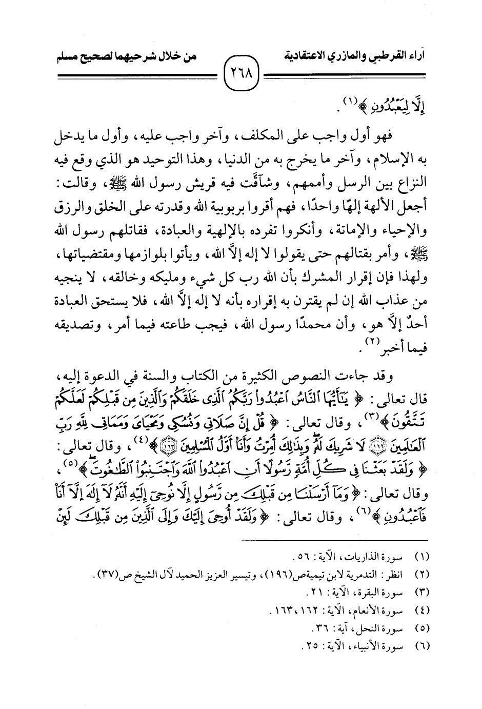 (¬٢) انظر: التدمرية لابن تيمية ص (١٩٦)، وتيسير العزيز الحميد لآل الشيخ ص (٣٧).