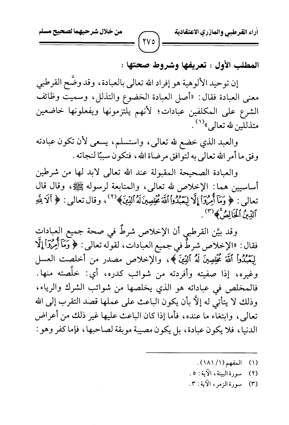(¬٢) سورة البينة، الآية: ٥.