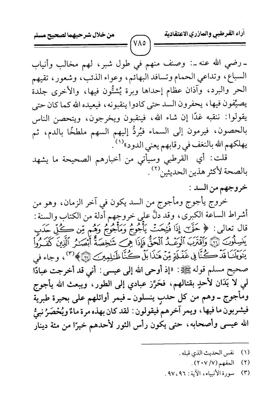 قلت: أي القرطبي وسيأتي من أخبارهم الصحيحة ما يشهد بالصحة لأكثر هذين الحديثين (¬٢).