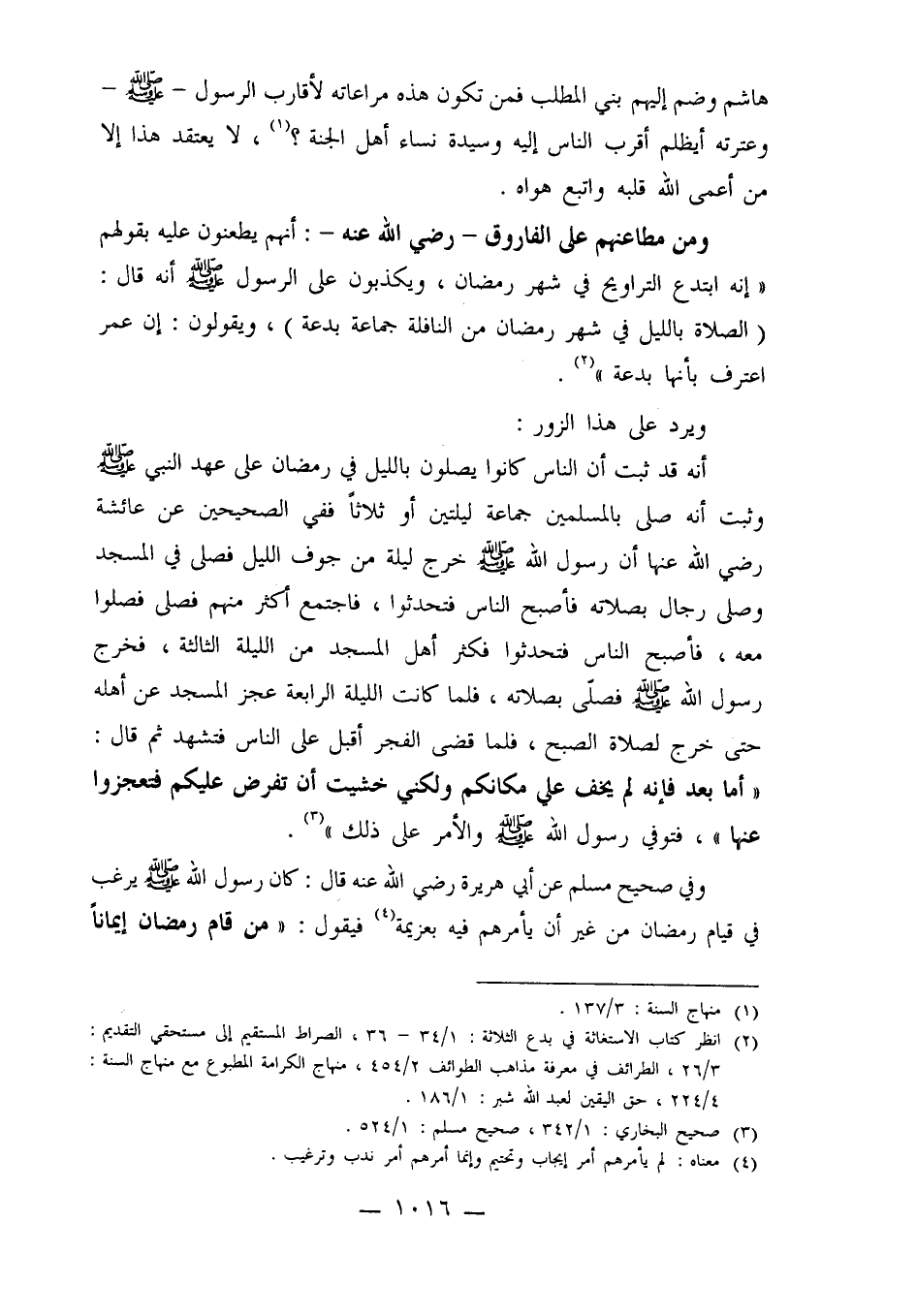 ومن مطاعنهم على الفاروق رضي الله عنه: أنهم يطعنون عليه بقولهم: "إنه ابتدع التروايح في شهر رمضان، ويكذبون على الرسول صلى الله عليه وسلم أنه قال: "الصلاة بالليل في شهر رمضان من النافلة جماعة بدعة"، ويقولون: إن عمر اعترف بأنها بدعة"2.