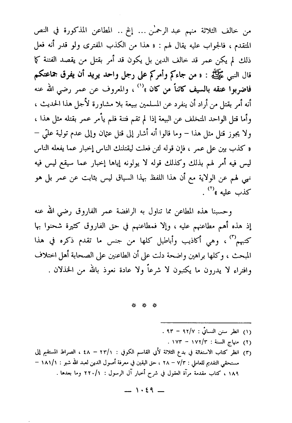 وحسبنا هذه المطاعن مما تناول به الرافضة عمر الفاروق رضي الله عنه إذ هذه أهم مطاعنهم عليه، وإلا فمطاعنهم في حق الفاروق كثيرة شحنوا بها كتبهم 3، وهي أكاذيب وأباطيل كلها من جنس ما تقدم ذكره في هذا المبحث، وكلها براهين واضحة دلت على أن الطاعنين على الصحابة أهل اختلاف وافتراء لا يدرون ما يكتبون لا شرعاً ولا عادة نعوذ بالله من الخذلان.