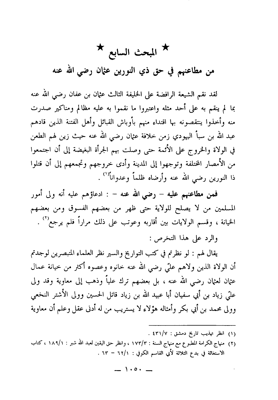 المبحث السابع: من مطاعنهم في حق ذي النورين عثمان رضي الله عنه
