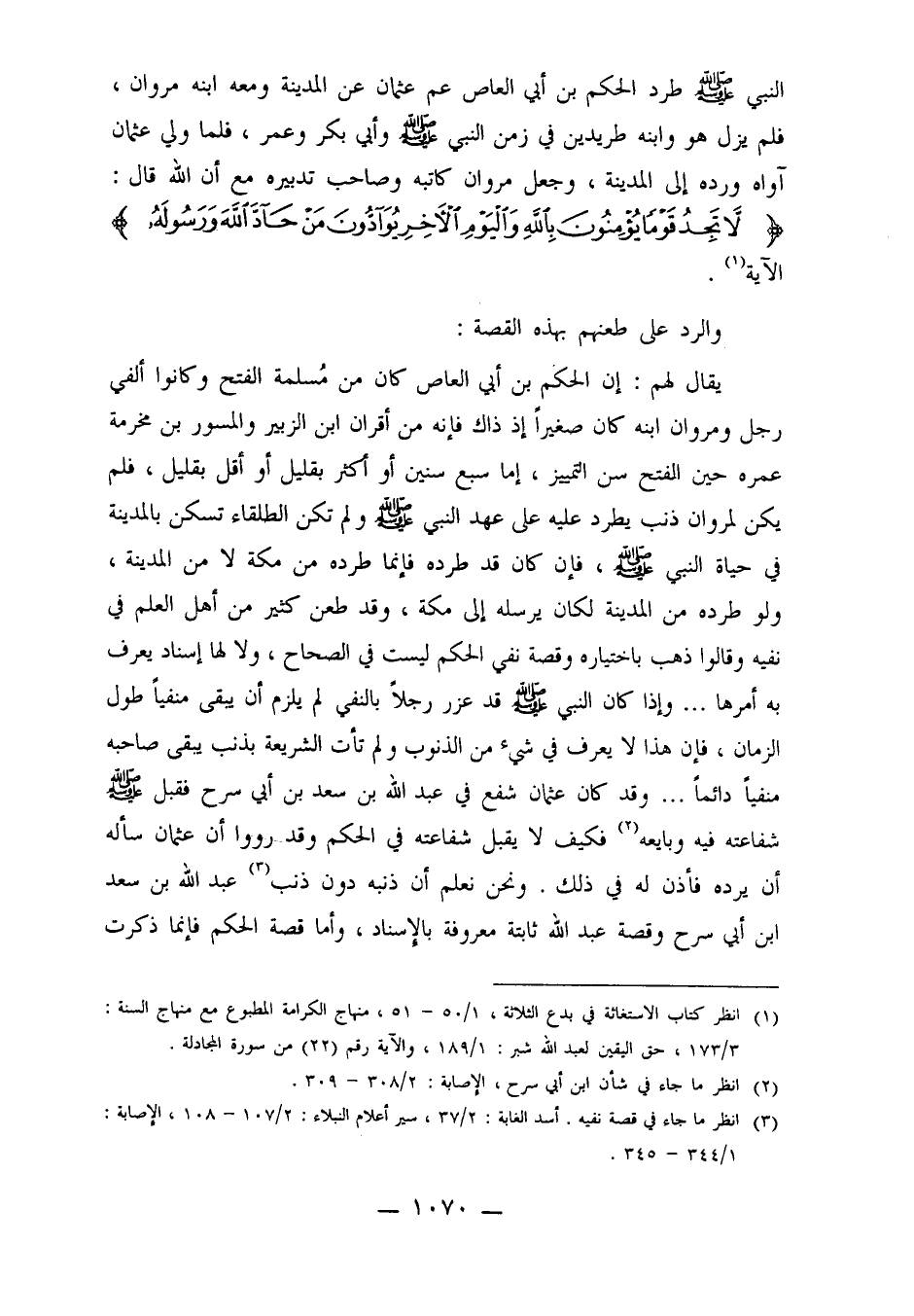 1ـ انظر كتاب الاستغاثة في بدع الثلاثة 1/50-51، منهاج الكرامة المطبوع مع منهاج السنة 3/173، حق اليقين 1/189، والآية رقم 22 من سورة المجادلة.
