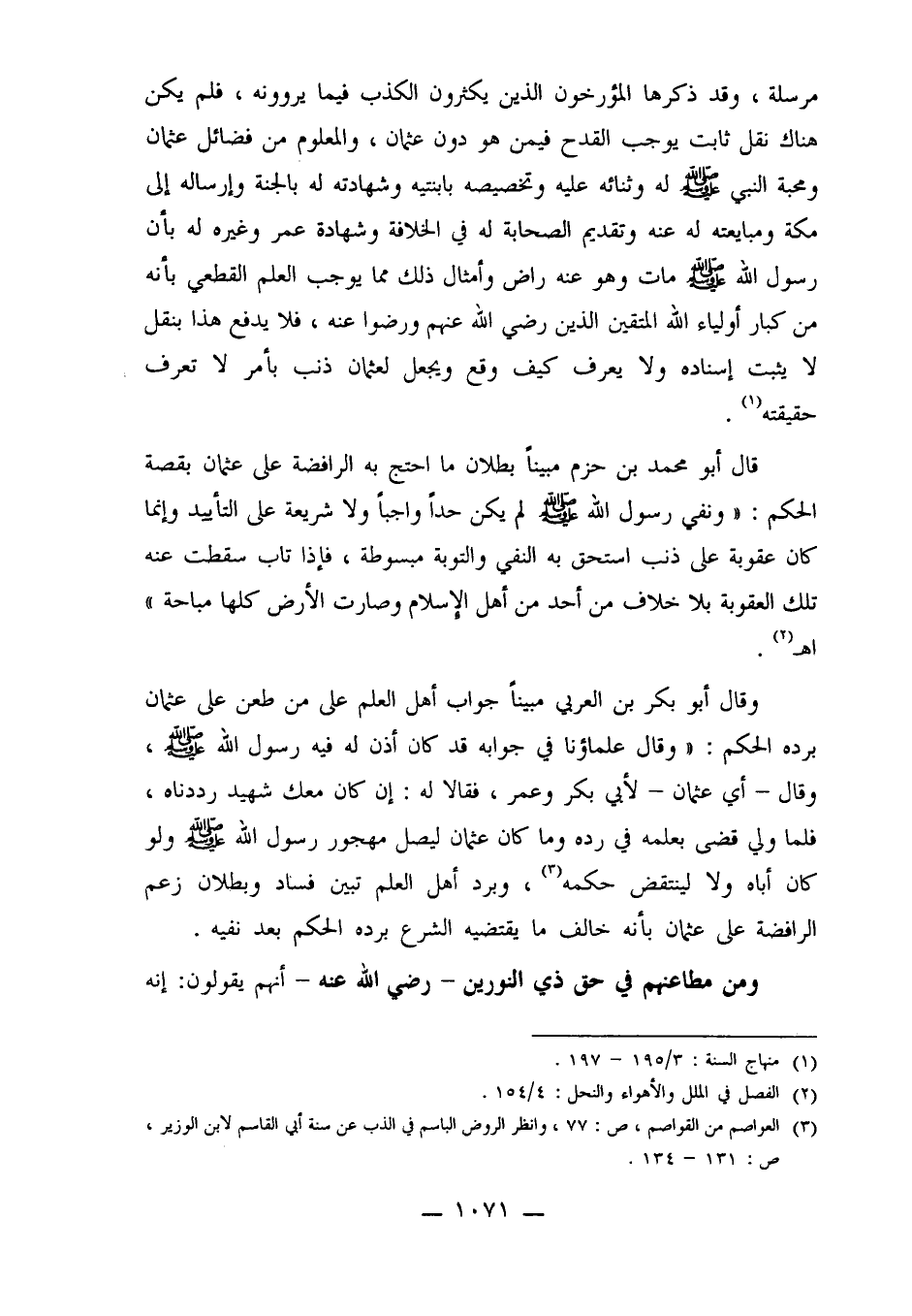 3ـ العواصم من القواصم ص/77، وانظر الروض الباسم في الذب عن سنة أبي القاسم لابن الوزير، ص/131-134.