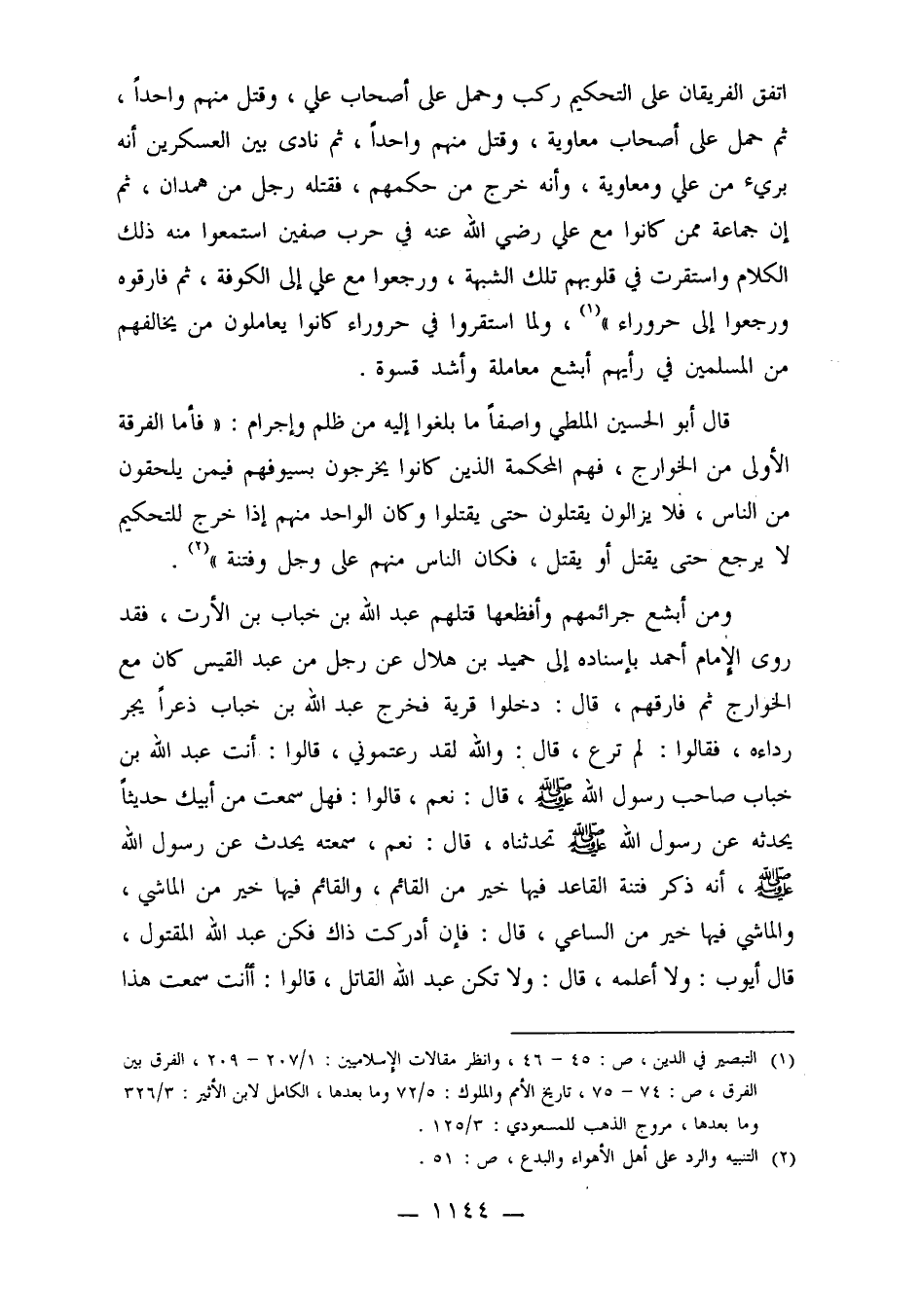 1ـ التبصير في الدين ص/45-46، وانظر مقالات الإسلاميين 1/207-209، الفرق بين الفرق ص/74-75، تاريخ الأمم والملوك 5/72 وما بعدها، الكامل في التاريخ 3/326 وما بعدها، مروج الذهب للمسعودي 3/125.
