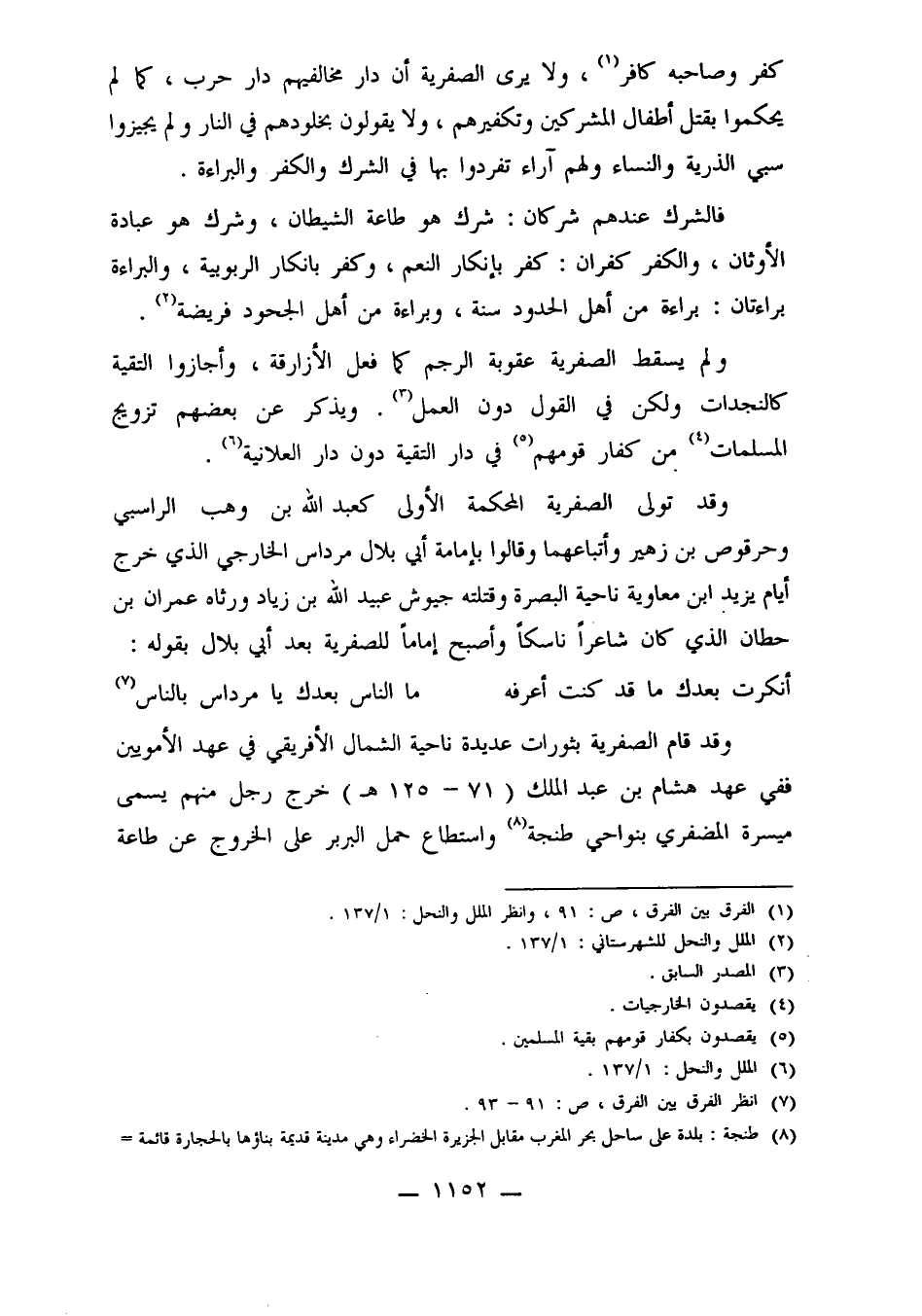 1ـ الفرق بين الفرق ص/91، وانظر الملل والنحل للشهرستاني 1/137.
