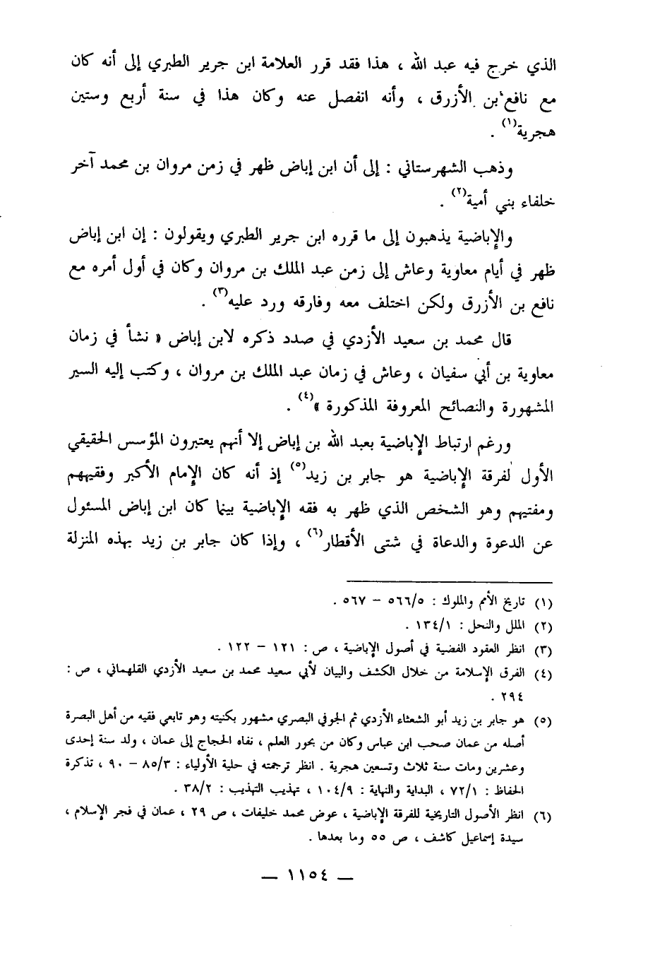 6ـ انظر الأصول التاريخية للفرقة الإباضية، عوض محمد خليفات، ص/29، عمان في فجر الإسلام، سيدة إسماعيل كاشف، ص/55 وما بعدها.