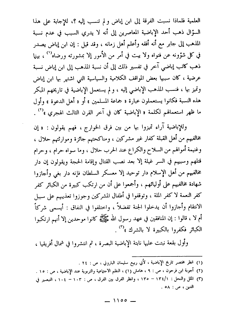 1ـ انظر مختصر تاريخ الإباضية لأبي ربيع سليمان الباروني ص/24.