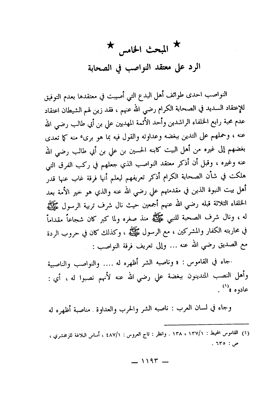 المبحث الخامس: الرد على معتقد النواصب في الصحابة