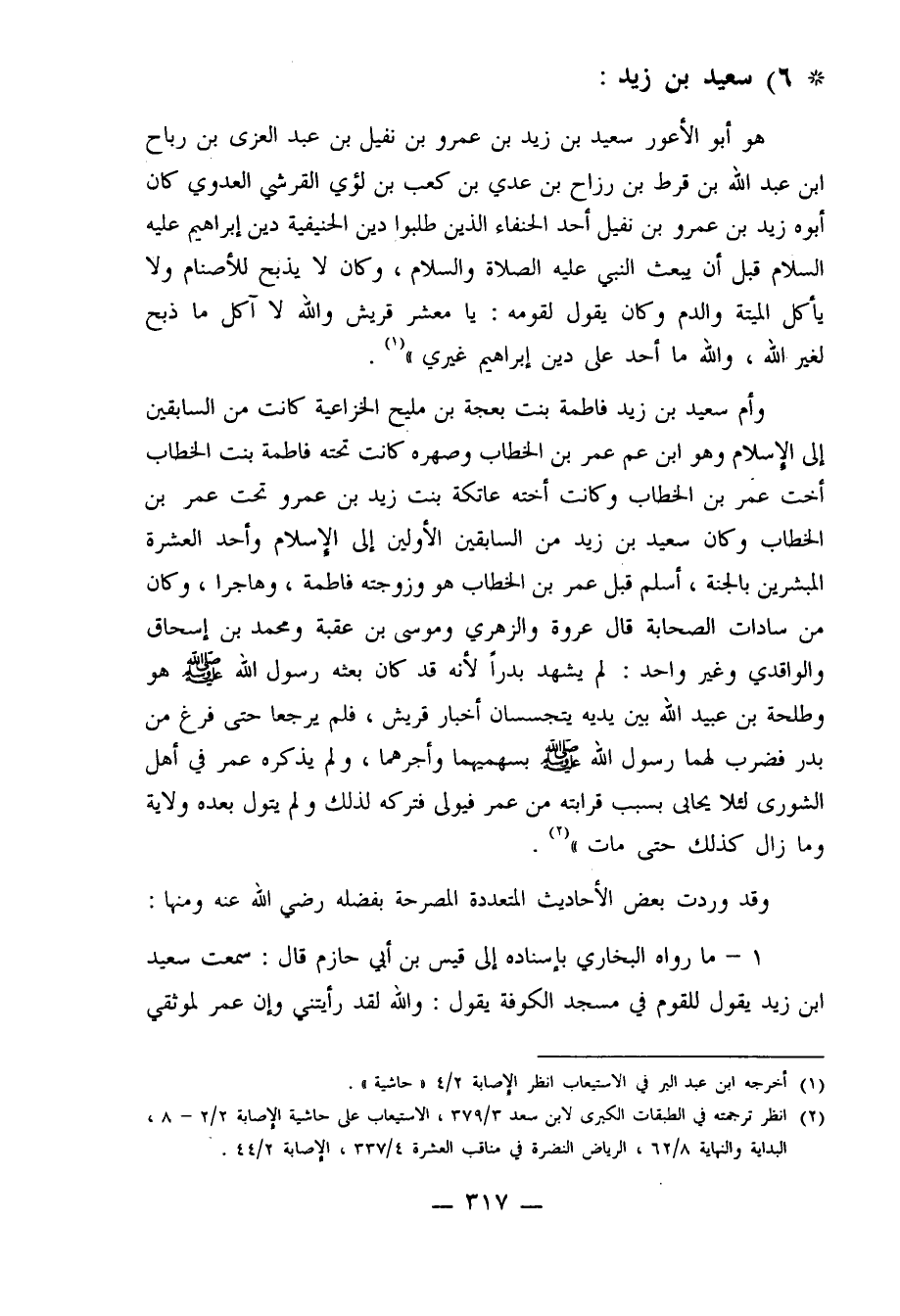 2ـ انظر ترجمته في الطبقات الكبرى لابن سعد 3/372، الاستيعاب على حاشية الإصابة 2/2-8، البداية والنهاية 8/62، الرياض النضرة في مناقب العشرة 4/337، الإصابة 2/44.