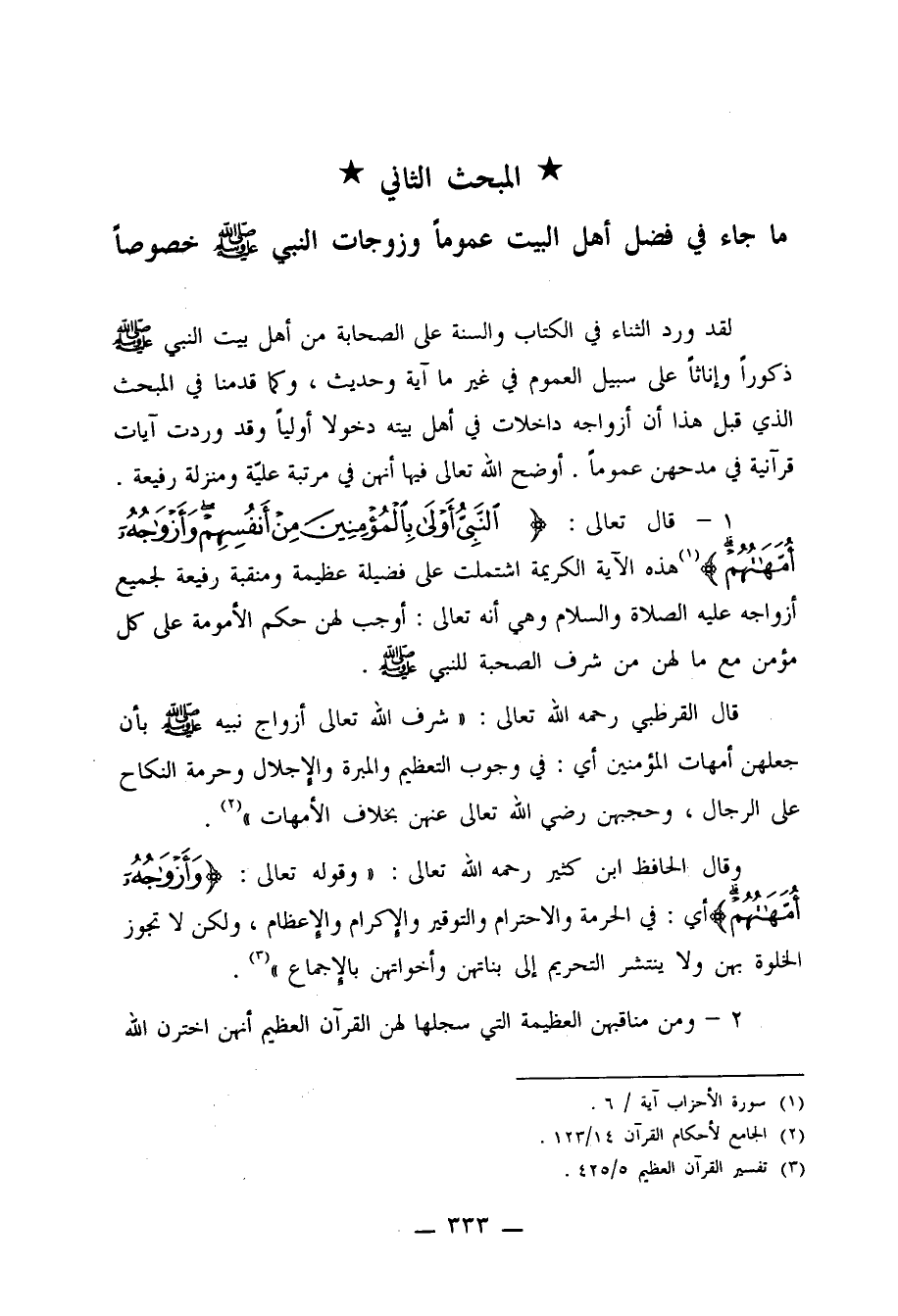 المبحث الثاني: ما جاء في فضل أهل البيت عموماً وزوجات النبي صلى الله عليه وسلم خصوصاً