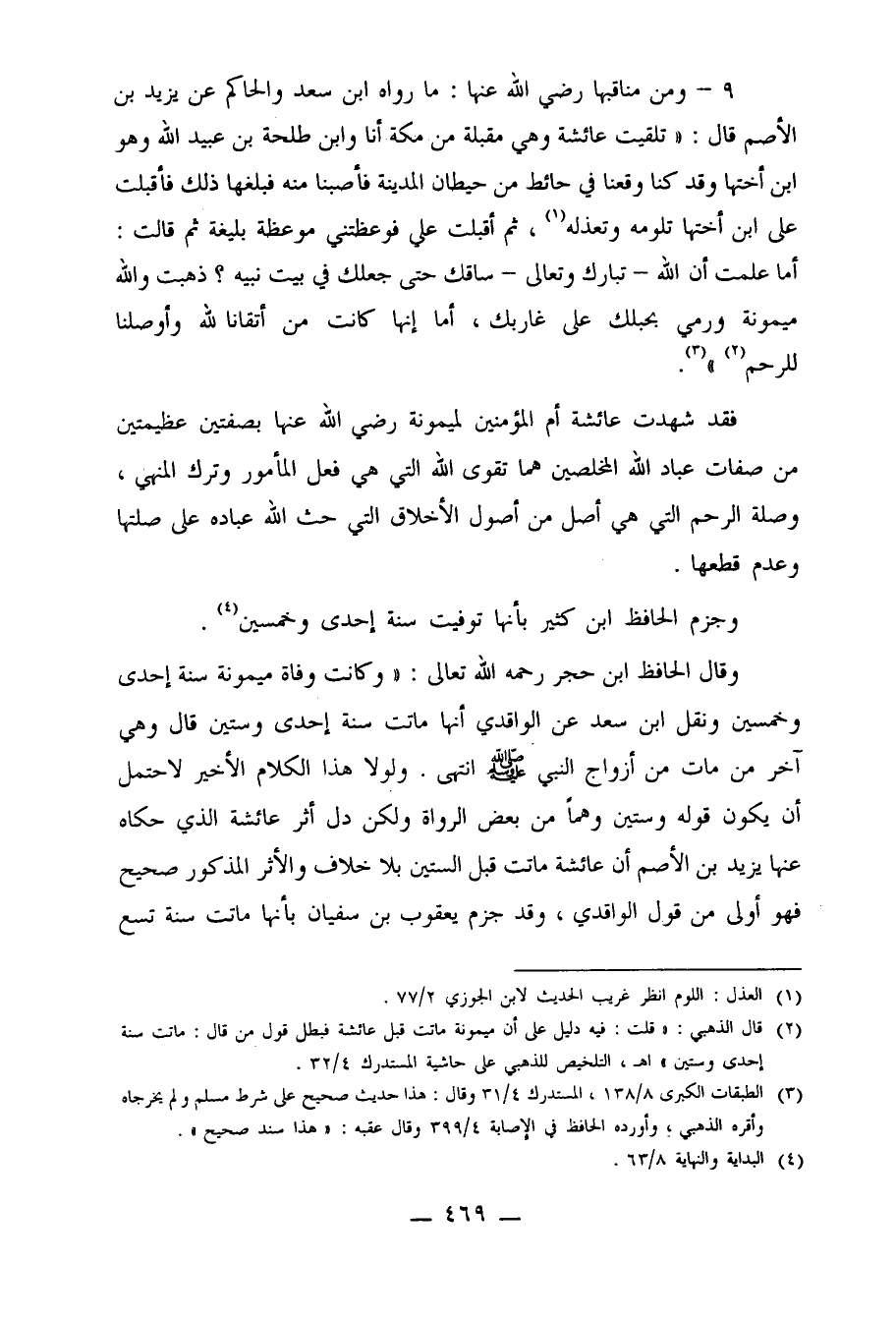 2ـ قال الذهبي: "قلت: فيه دليل على أن ميمونة ماتت قبل عائشة فبطل قول من قال: ماتت سنة إحدى وستين"أهـ، التلخيص للذهبي على حاشية المستدرك 4/32.