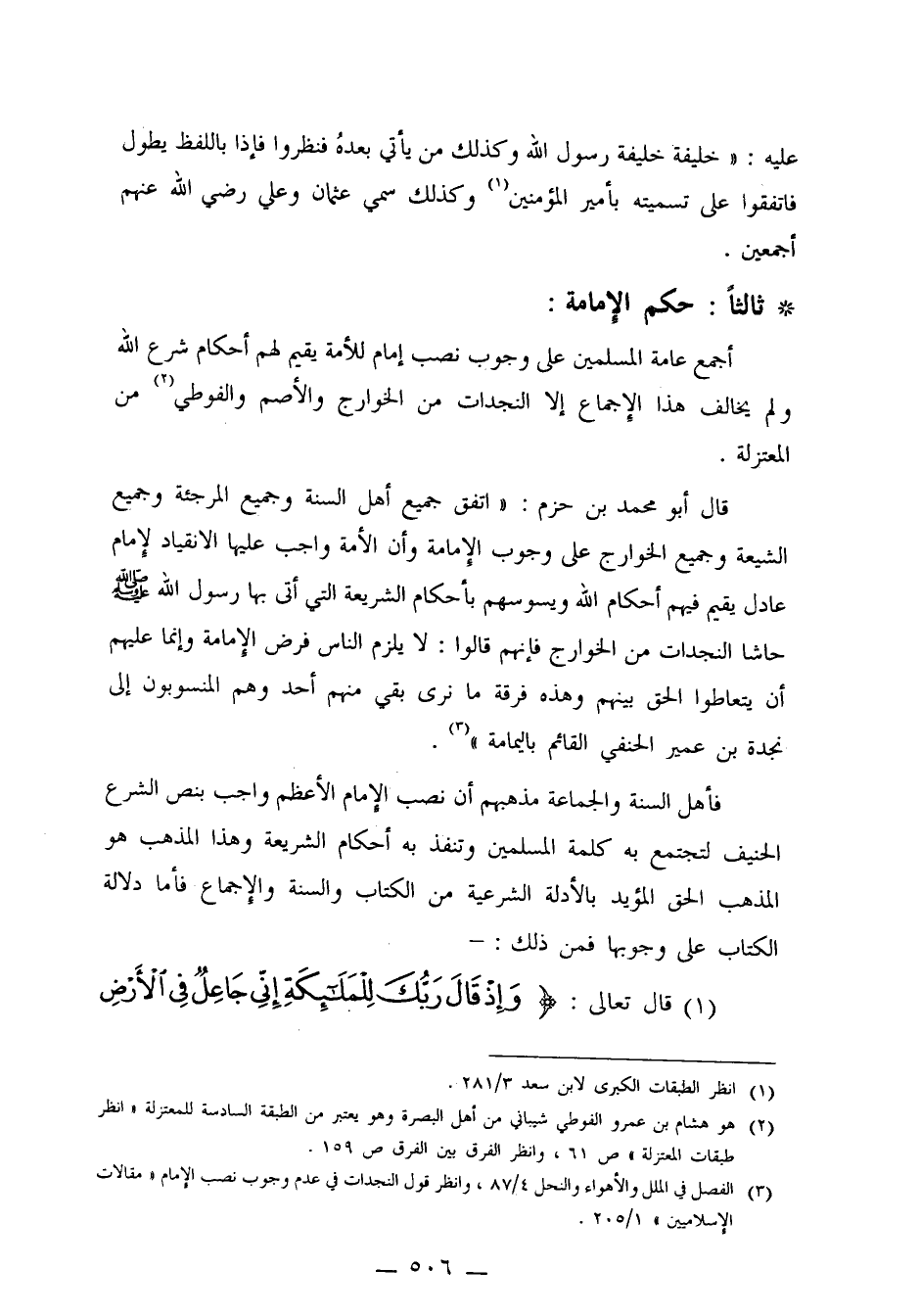 3ـ الفصل في الملل والأهواء والنحل 4/87، وانظر قول النجدات في عدم وجوب نصب الإمام "مقالات الإسلاميين" 1/205.