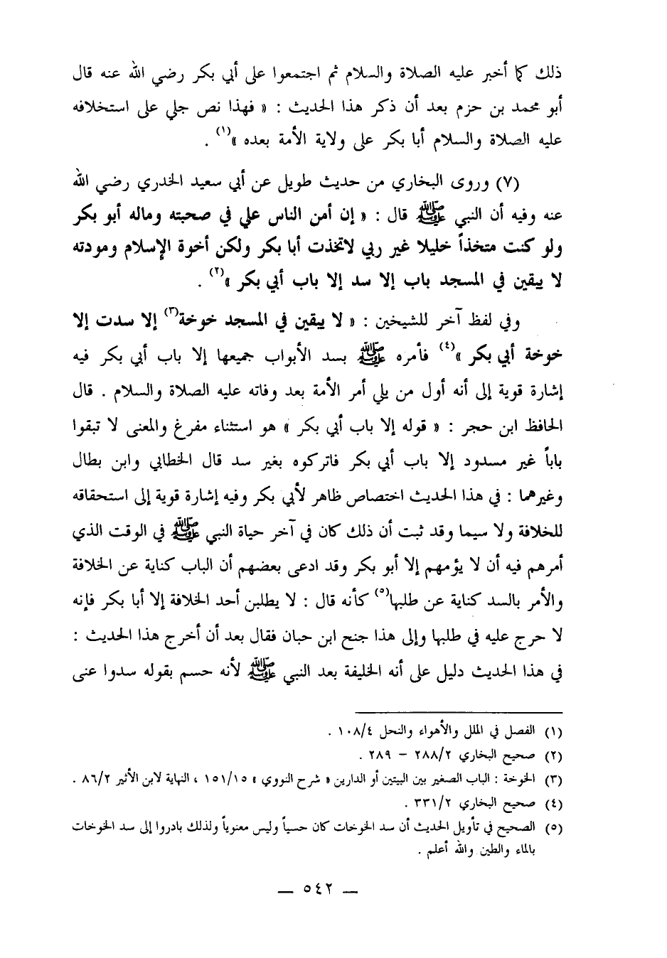 7- وروى البخاري من حديث طويل عن أبي سعيد الخدري رضي الله عنه وفيه أن النبي صلى الله عليه وسلم قال: "إن أمن الناس علي في صحبته وماله أبو بكر ولو كنت متخذاً خليلاً غير ربي لاتخذت أبا بكر ولكن أخوة الإسلام ومودته لا يبقين في المسجد باب إلا سد إلا باب أبي بكر" 2.