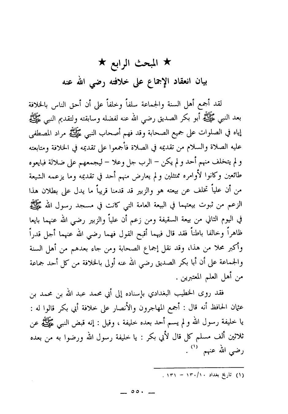 المبحث الرابع: بيان الإجماع على خلافته رضي الله عنه