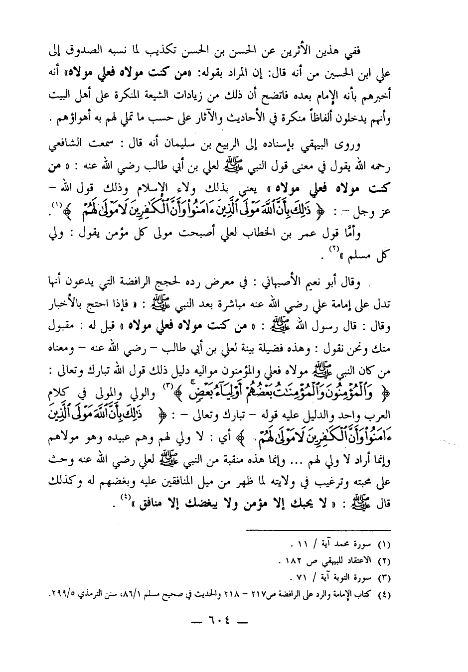 4ـ كتاب الإمامة والرد على الرافضة ص/217-218 والحديث في صحيح مسلم 1/86، سنن الترمذي 5/299.