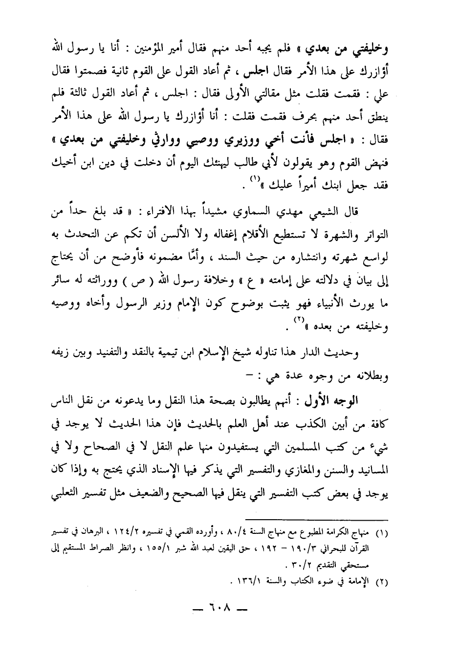 2ـ الإمامة في ضوء الكتاب والسنة 1/136