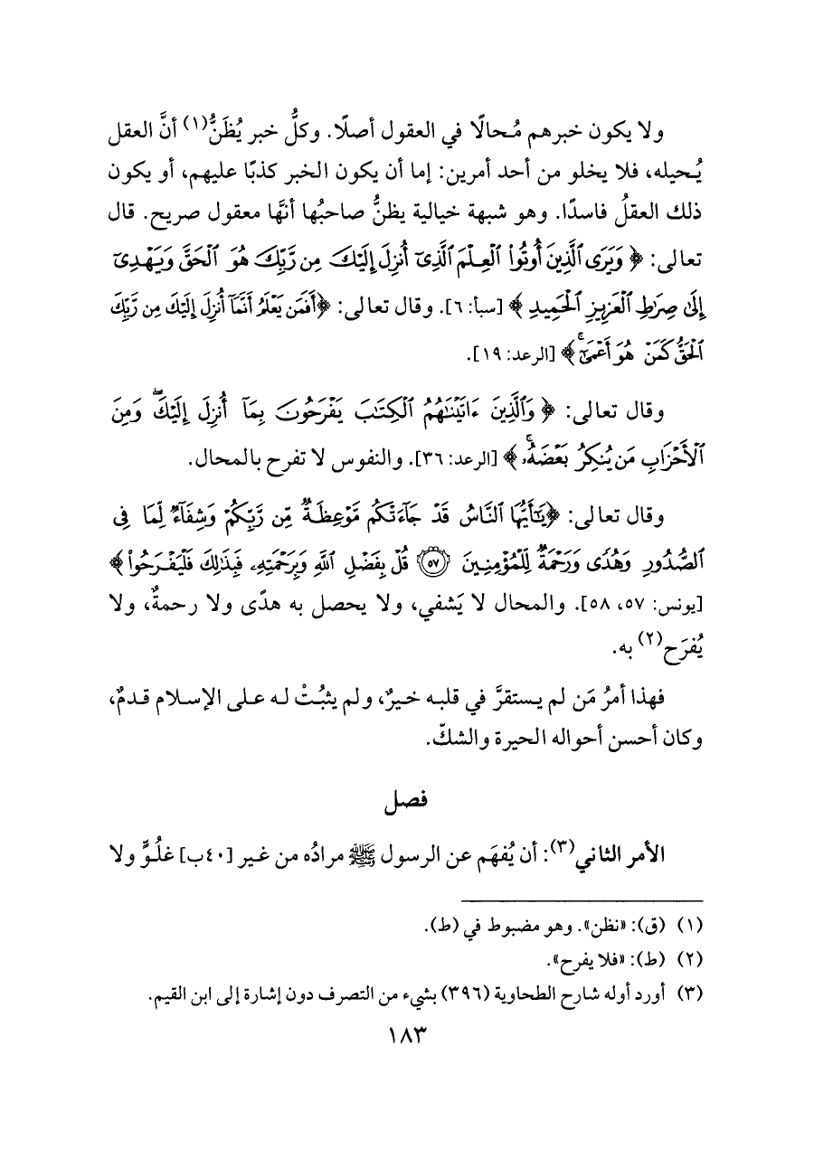 (¬٣) أورد أوله شارح الطحاوية (٣٩٦) بشيء من التصرف دون إشارة إلى ابن القيم.
