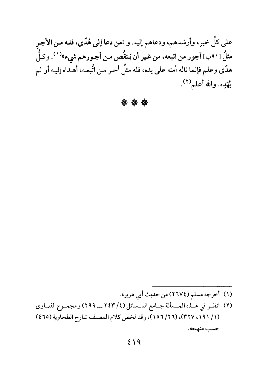 على كلِّ خير، وأرشدهم، ودعاهم إليه. و «من دعا إلى هُدًى، فله من الأجرِ مثلُ [٩١ ب] أجور من اتبعه، من غير أن يَنقُص من أجورهم شيء» (¬١). وكلُّ هدًى وعلم فإنما ناله أمته على يده، فله مثلُ أجر من اتَّبعه، أهداه إليه أو لم يُهْدِه. والله أعلم (¬٢).