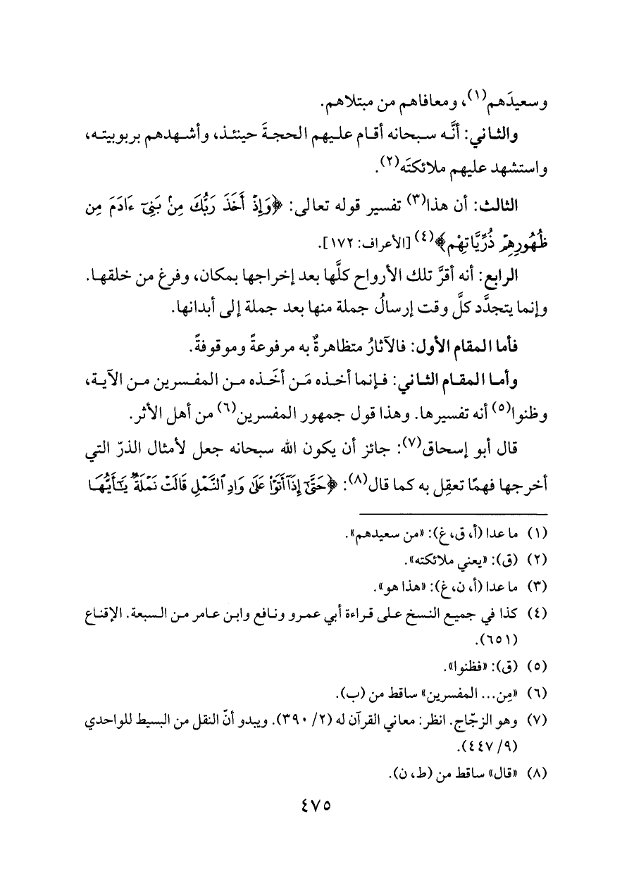 الثالث: أن هذا (¬٣) تفسير قوله تعالى: {وَإِذْ أَخَذَ رَبُّكَ مِنْ بَنِي آدَمَ مِنْ ظُهُورِهِمْ ذُرِّيَّاتِهْم} (¬٤) [الأعراف: ١٧٢].