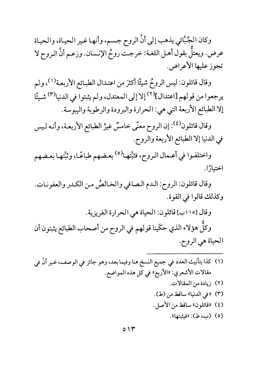 وكلُّ هؤلاء الذي حكَينا قولهم في الروح من أصحاب الطبائع يثبتون أن الحياة هي الروح.