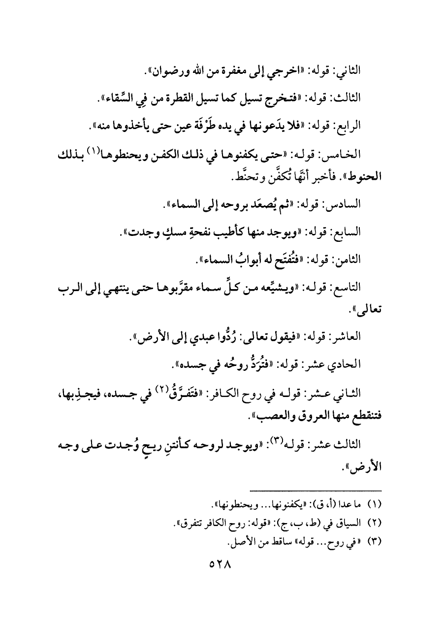 (¬٢) السياق في (ط، ب، ج): «قوله: روح الكافر تتفرق».