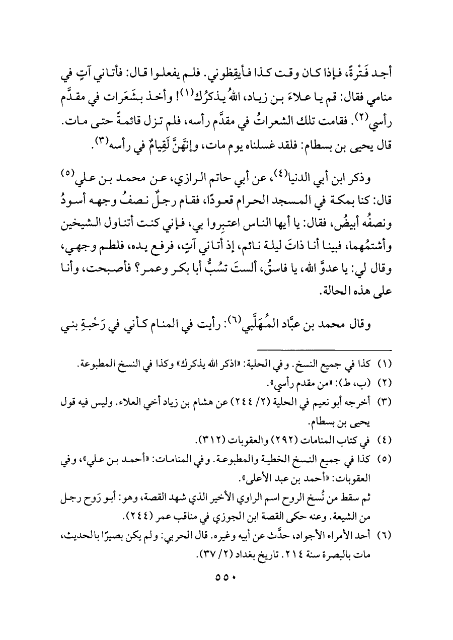 (¬٥) كذا في جميع النسخ الخطية والمطبوعة. وفي المنامات: «أحمد بن علي»، وفي العقوبات: «أحمد بن عبد الأعلى».
