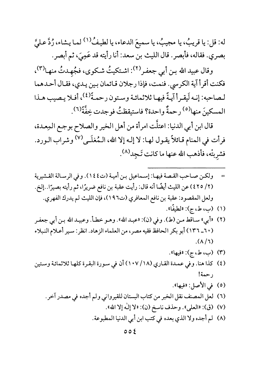 (¬٨) لم أجده ولا الذي بعده في كتب ابن أبي الدنيا المطبوعة.