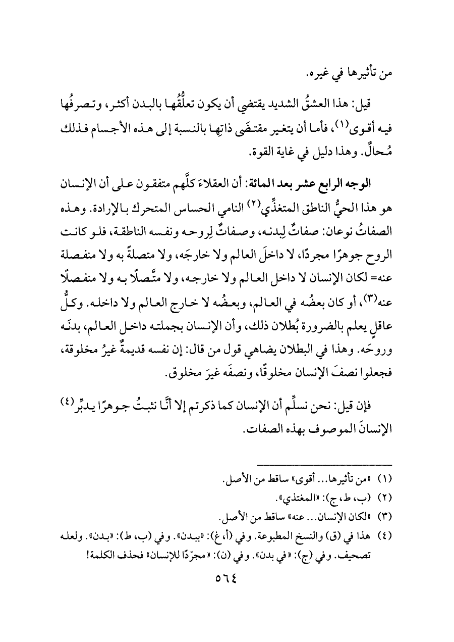 (¬٤) هذا في (ق) والنسخ المطبوعة. وفي (أ، غ): «ببدن». وفي (ب، ط): «بدن». ولعله تصحيف. وفي (ج): «في بدن». وفي (ن): «مجرّدًا للإنسان» فحذف الكلمة!