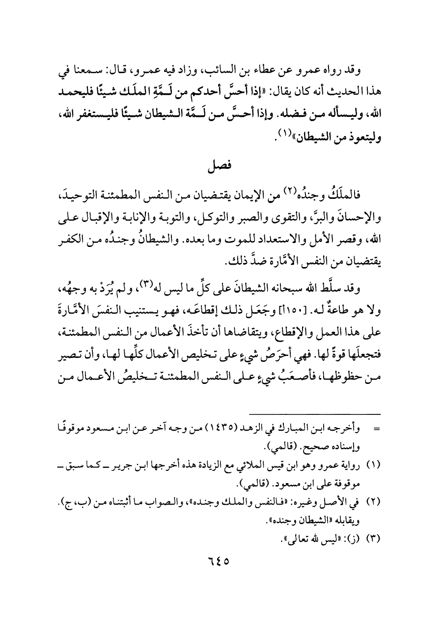 (¬٢) في الأصل وغيره: «فالنفس والملك وجنده»، والصواب ما أثبتناه من (ب، ج). ويقابله «الشيطان وجنده».