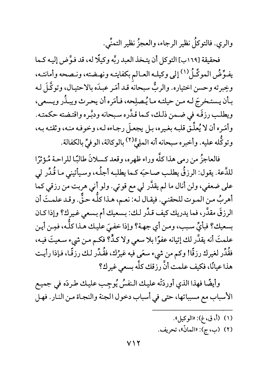 والري. فالتوكلُ نظير الرجاء، والعجزُ نظير التمنِّي.
