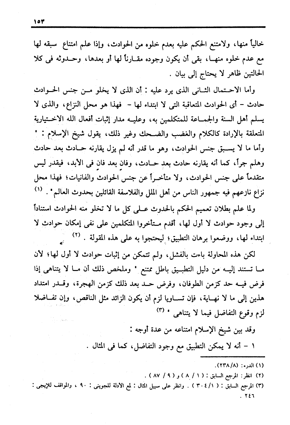 (٣) المرجع السابق: (١/ ٣٠٤). وانظر على سبيل المثال: لمع الأدلة للجوينى: ٩٠، والمواقف للإيجى: ٢٤٦.