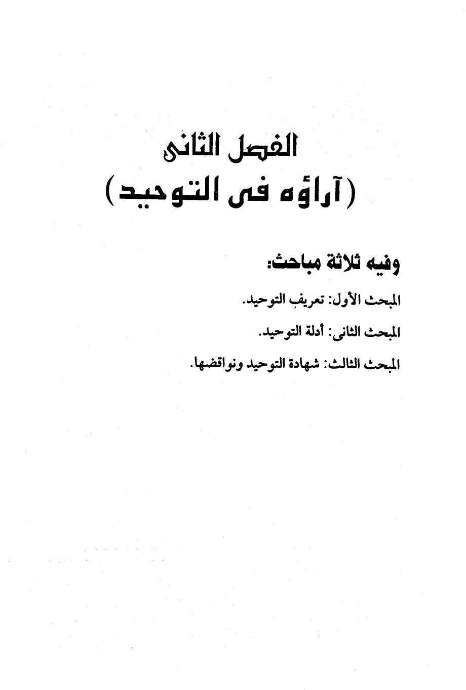 الفصل الثاني: (آراؤه في التوحيد)