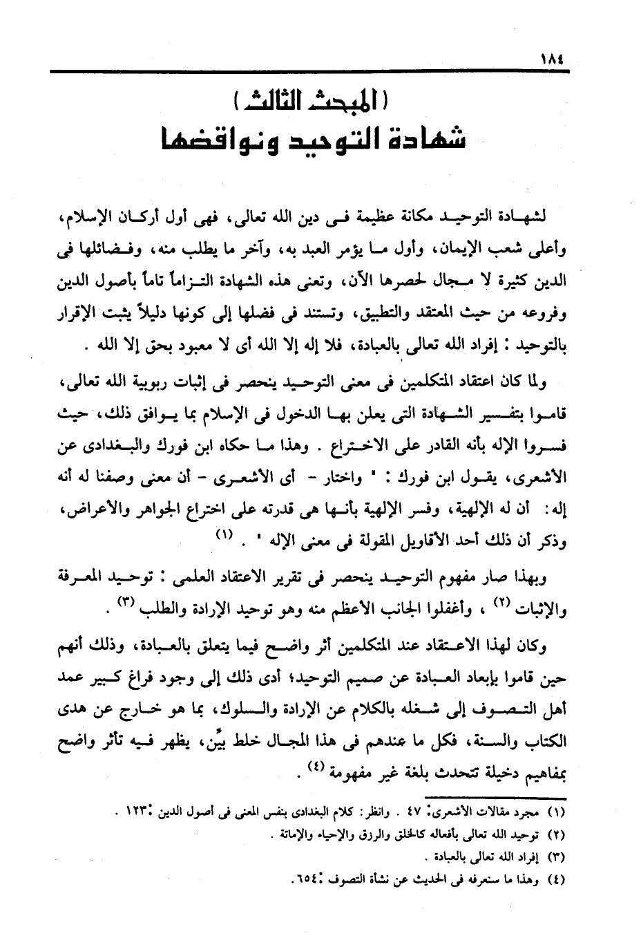 وبهذا صار مفهوم التوحيد ينحصر في تقرير الاعتقاد العلمى: توحيد المعرفة والإثبات (٢)، وأغفلوا الجانب الأعظم منه وهو توحيد الإرادة والطلب (٣).