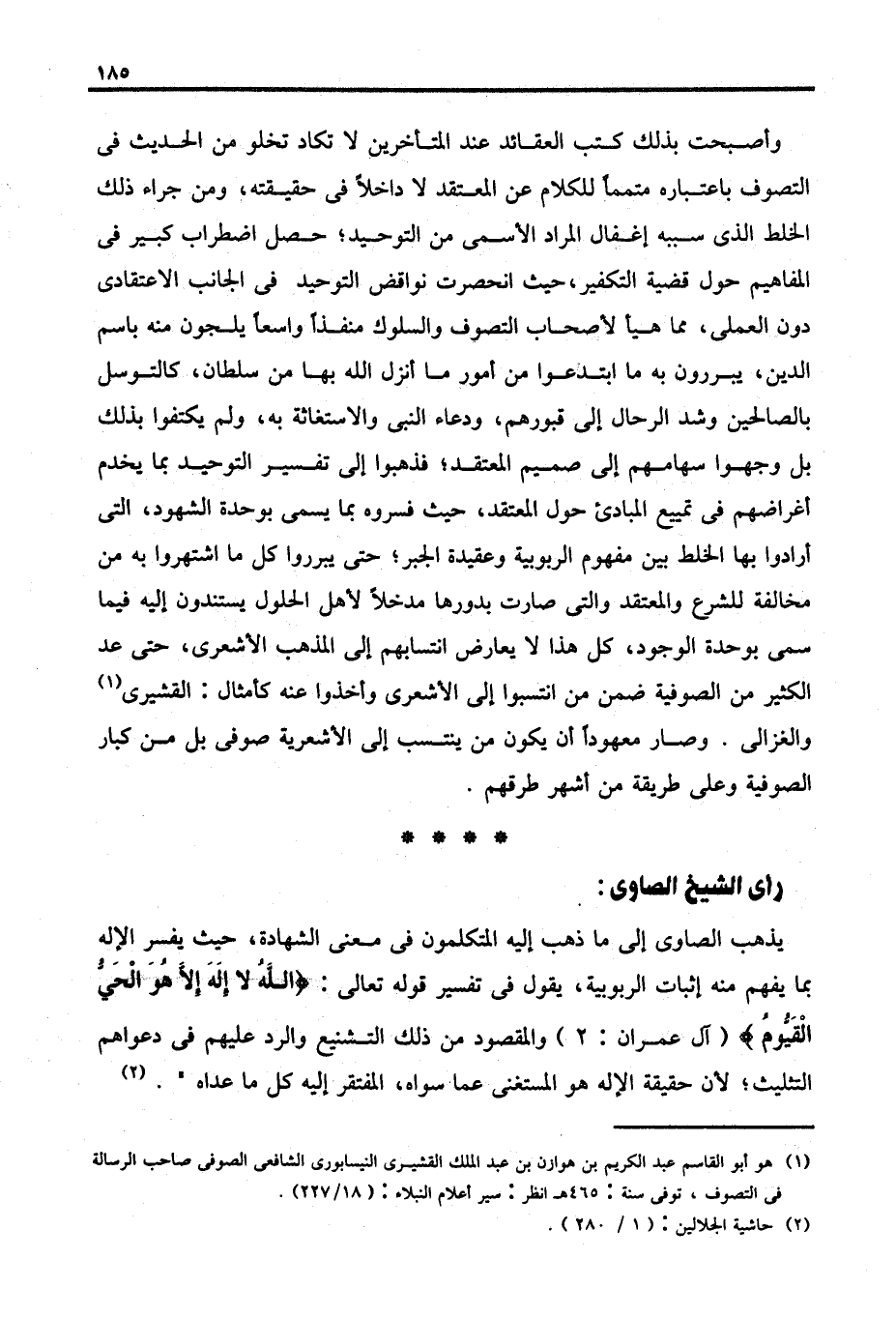 (١) هو أبو القاسم عبد الكريم بن هوازن بن عبد الملك القشيرى النيسابورى الشافعي الصوفى صاحب الرسالة في التصوف، توفى سنة: ٤٦٥ هـ انظر: سير أعلام النبلاء: (١٨/ ٢٢٧).