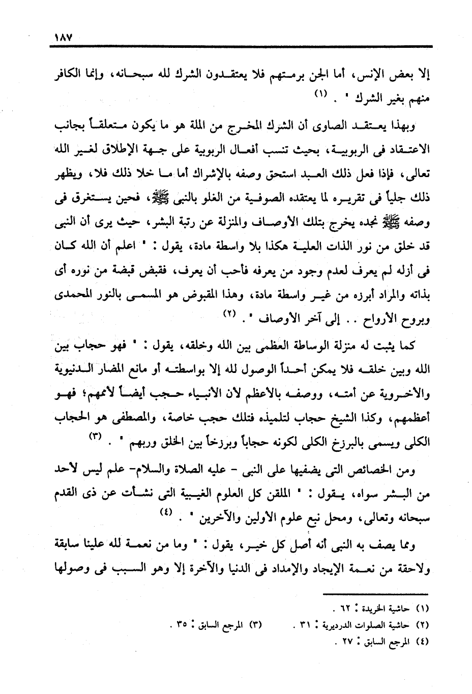 (٢) حاشية الصلوات الدرديرية: ٣١.