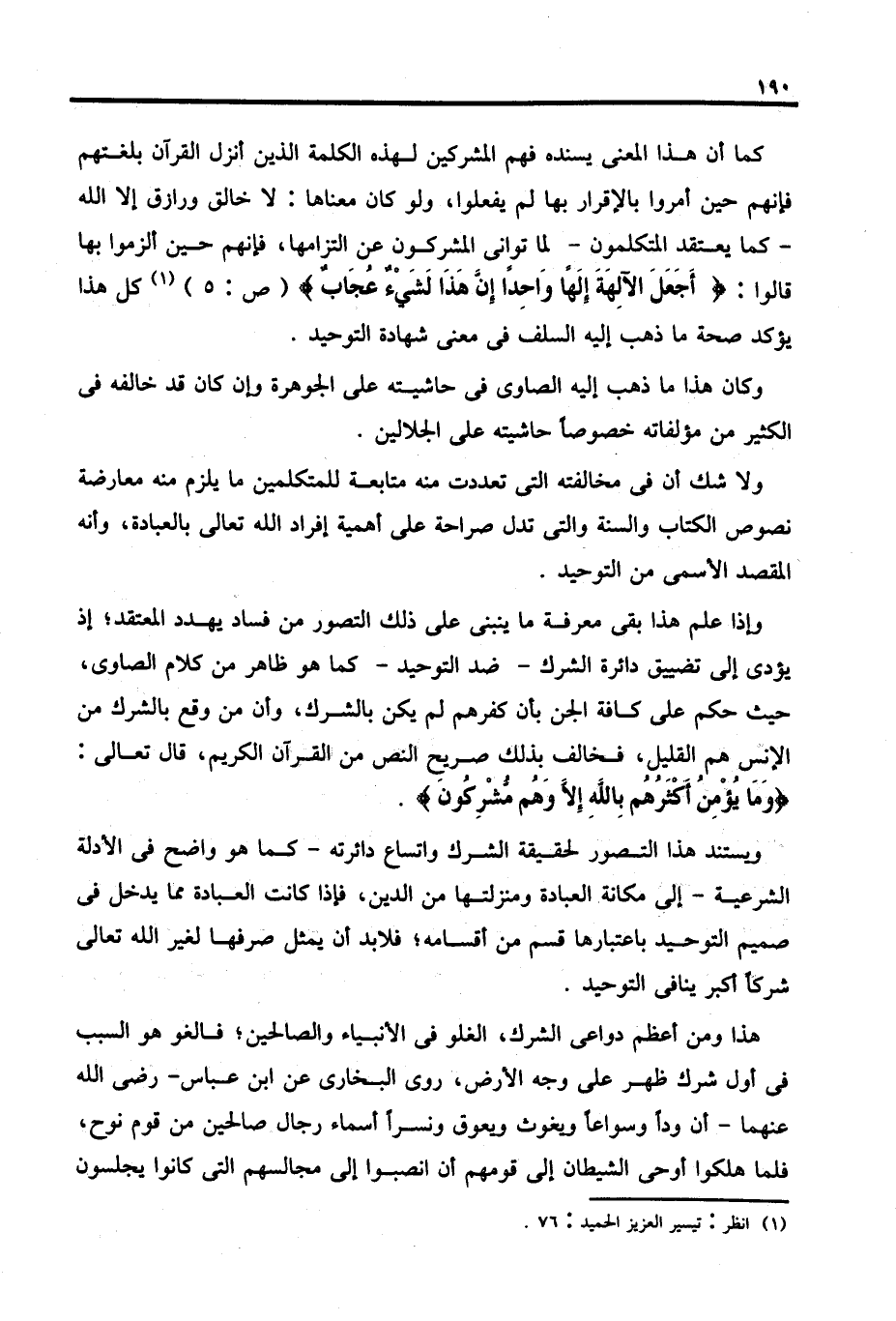 (١) انظر: تيسير العزيز الحميد: ٧٦.
