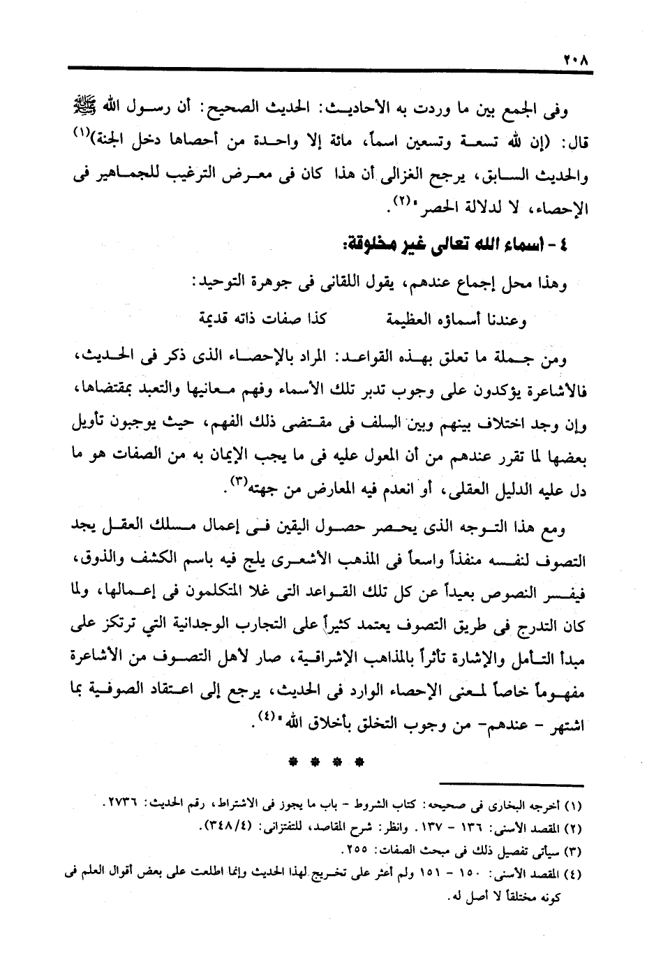 (٢) المقصد الأسنى: ١٣٦ - ١٣٧. وانظر: شرح المقاصد، للتفتزانى: (٤/ ٣٤٨).