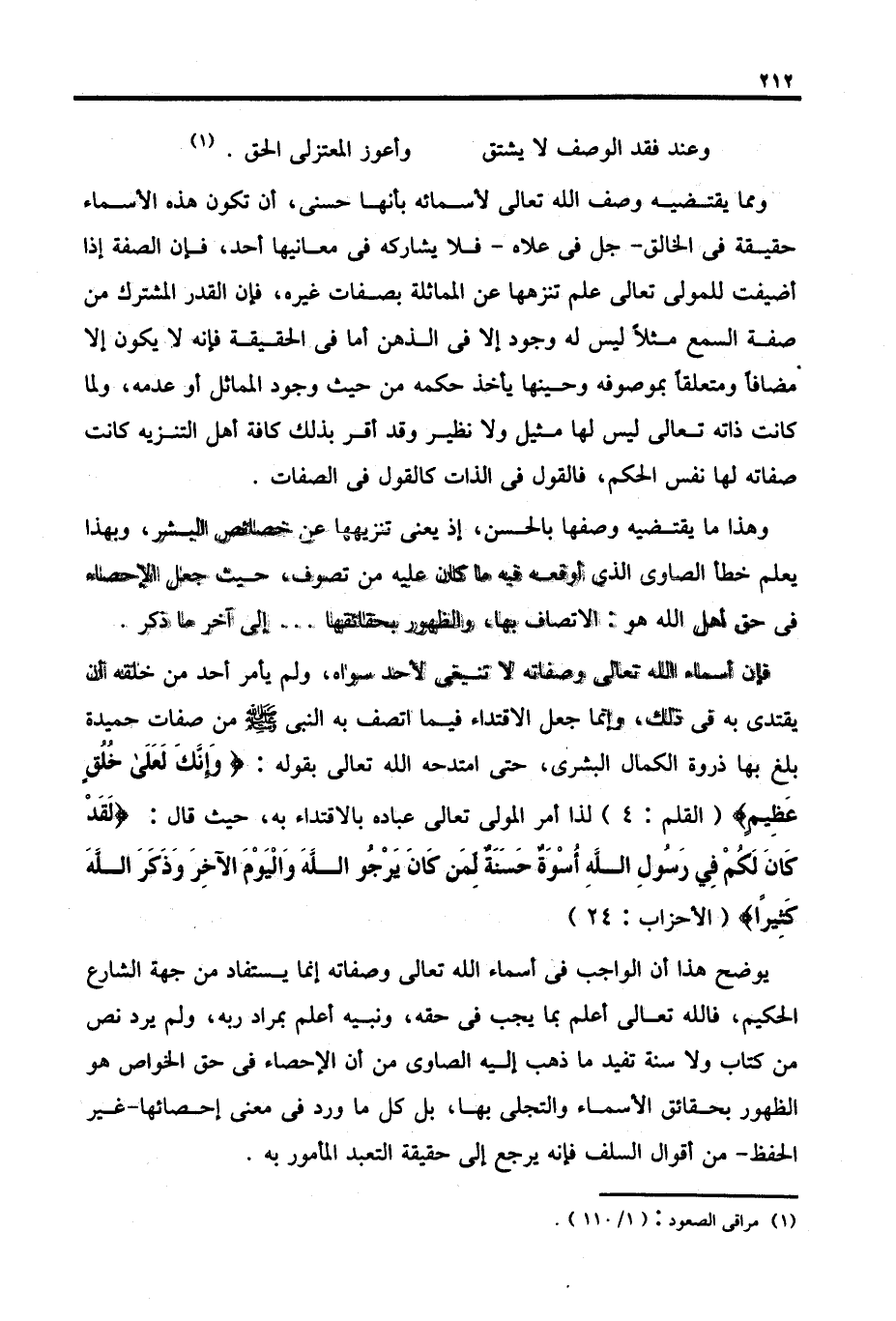 وهذا ما يقتضيه وصفها بالحسن، إذ يعنى تنزيهها عن خصائص البشر، وبهذا يعلم خطأ الصاوي الذي أوقعه فيه ما كان عليه من تصوف, حيث جعل الإحصاء في حق أهل الله هو: الاتصاف بها, والظهور بحقائقها. . . إلى آخر ما ذكر.