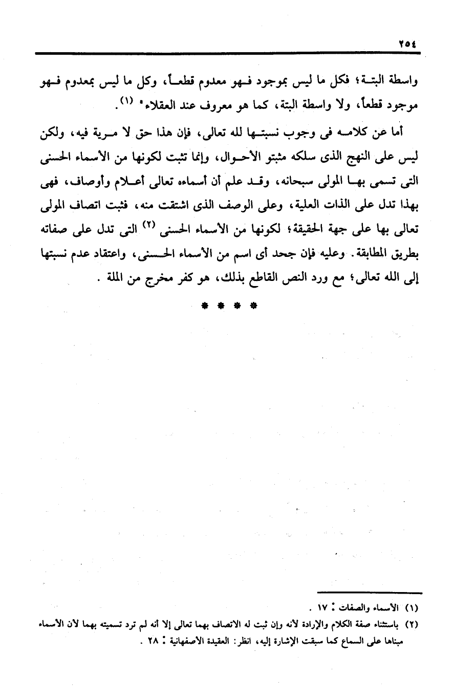 (٢) باستثناء صفة الكلام والإرادة لأنه وإن ثبت له الاتصاف بهما تعالى إلا أنه لم ترد تسميته بهما لأن الأسماء مبناها على السماع كما سبقت الإشارة إليه، انظر: العقيدة الأصفهانية: ٢٨.