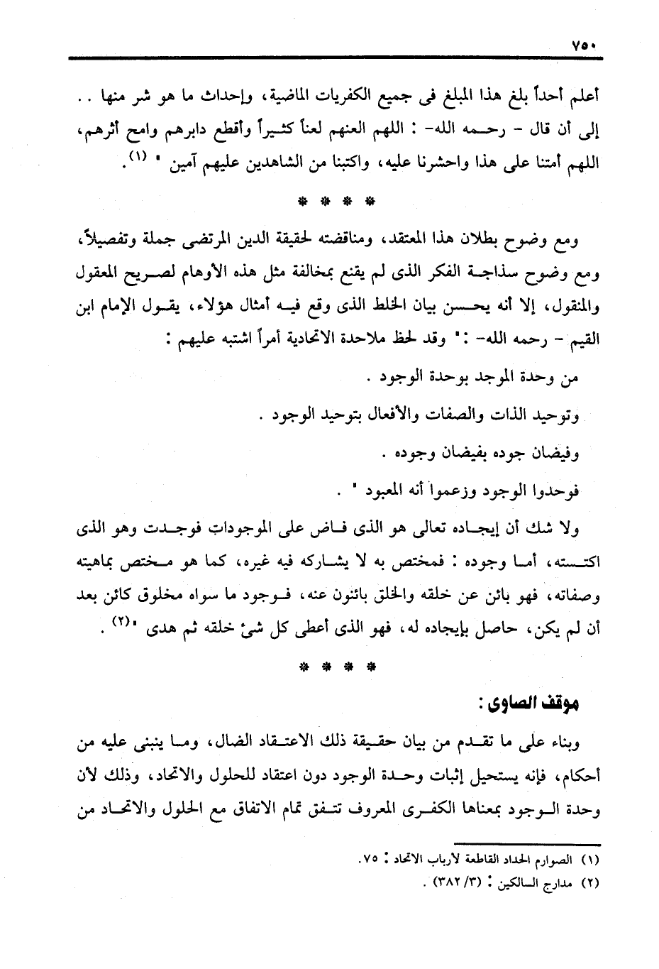 ومع وضوح بطلان هذا المعتقد، ومناقضته لحقيقة الدين المرتضى جملة وتفصيلًا، ومع وضوح سذاجة الفكر الذي لم يقنع بمخالفة مثل هذه الأوهام لصريح المعقول والمنقول، إلا أنه يحسن بيان الخلط الذي وقع فيه أمثال هؤلاء، يقول الإمام ابن القيم - رحمه الله -: وقد لحظ ملاحدة الاتحادية أمرًا اشتبه عليهم: