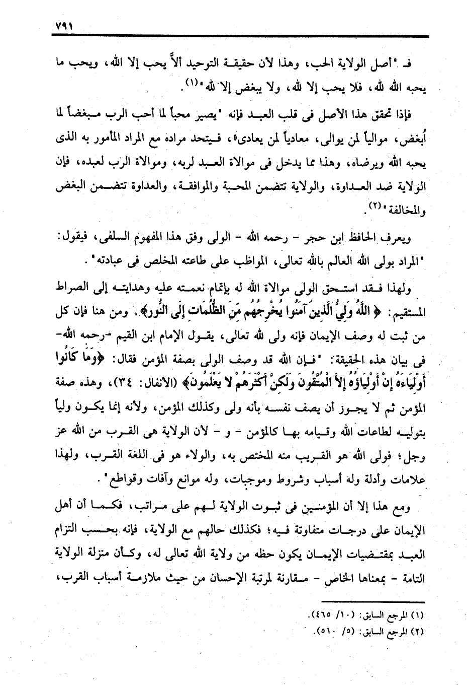 فـ "أصل الولاية الحب، وهذا لأن حقيقة التوحيد ألَّا يحب إلا الله، ويحب ما يحبه الله الله، فلا يحب إلا لله، ولا يبغض إلا لله" (١).