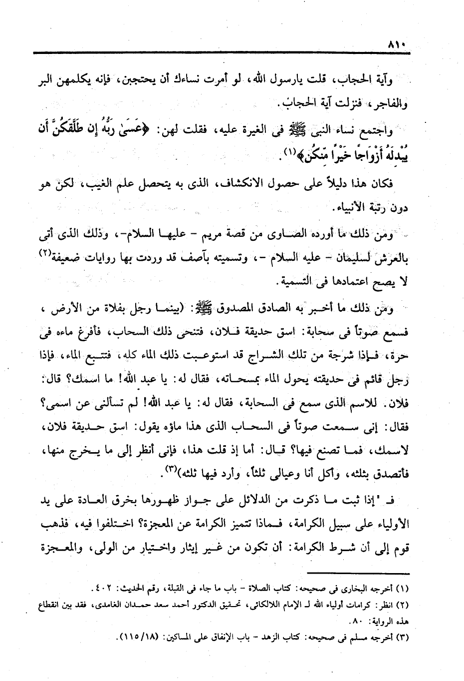 (٢) انظر: كرامات أولياء الله لـ الإمام اللالكائى، تحقيق الدكتور أحمد سعد حمدان الغامدى، فقد بين انقطاع هذه الرواية: ٨٠.